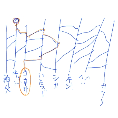で、今日の日記絵を何にしようか考えたアミダ。